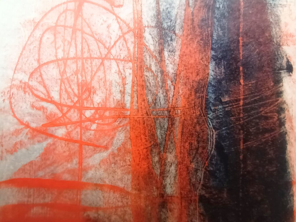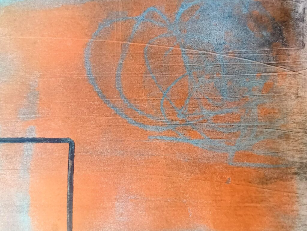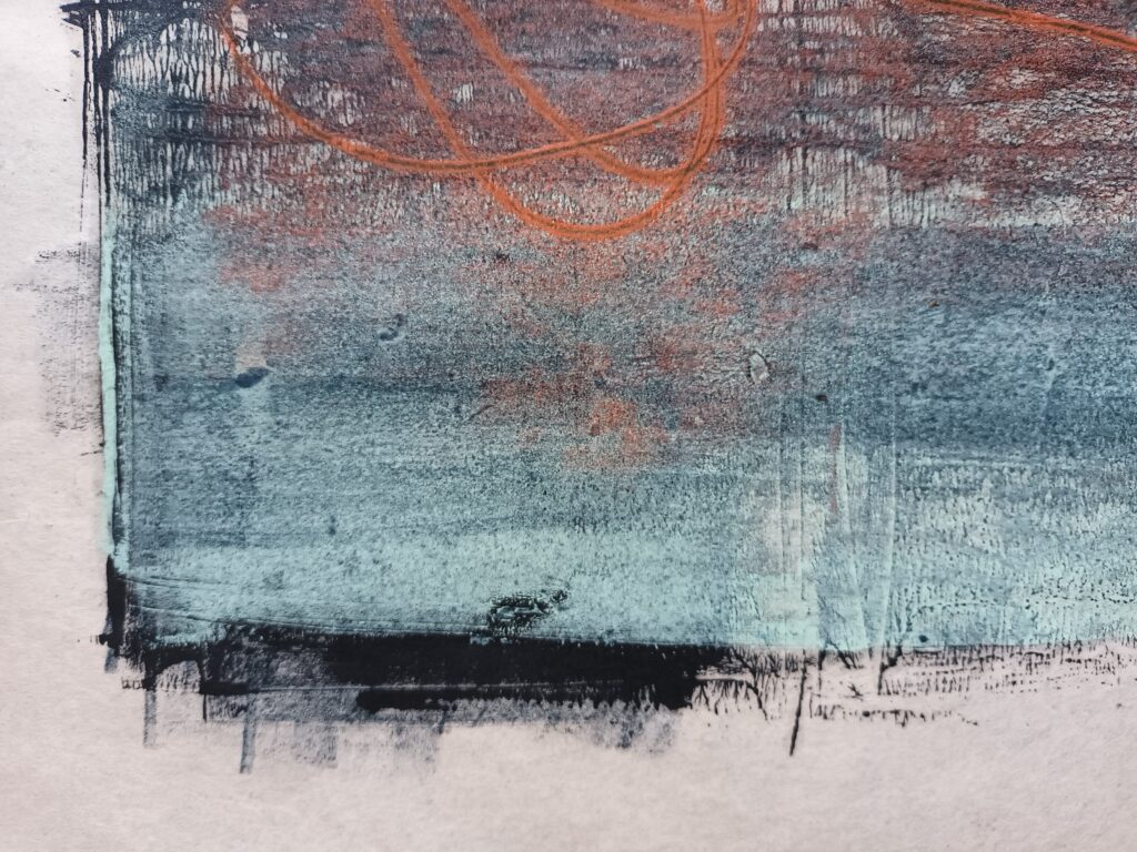 I’ve always loved the marks and textures of printmaking- and the best part – the reveal as you peel your paper away from your surface!
